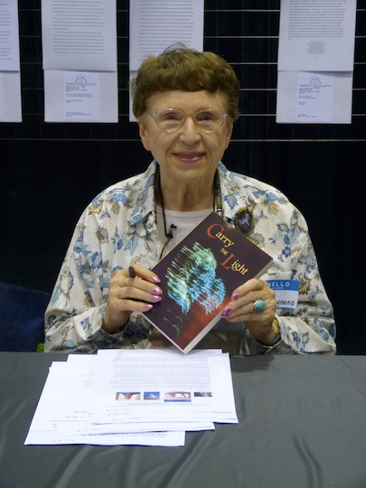 This photo of Jo was taken at the San Mateo County Fair in June 2013. The book she is holding, Carry the Light, is an anthology published by the Fine Arts Division at the fair, which included at least one submission from each contest entrant. This year Jo won honorable mention for her short story "Billy Boy." Several of her poems were also included in the anthology.