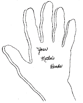 The poem with outline of Kathleen's hands was written for her 5 children, 12 grandchildren and 1 great-grandchild. The sketch can be enlarged to life size, regardless of the size of the palm that will fit into it. She shares this idea so you, too, may be inspired to leave an outline of your hands as part of your soul's signature--your legacy of love. |